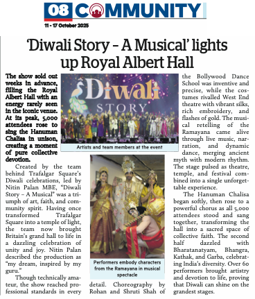 On 4 October, at the iconic Royal Albert Hall, Palan Foundation joined hands with Sanatan Events and Golden Tours to present The Diwali Story — a spectacular celebration of light, tradition and community. Anchored in the timeless narratives of Diwali, this production beautifully wove together music, dance, storytelling and visual grandeur, offering audiences an immersive journey through mythology, values and cultural heritage.